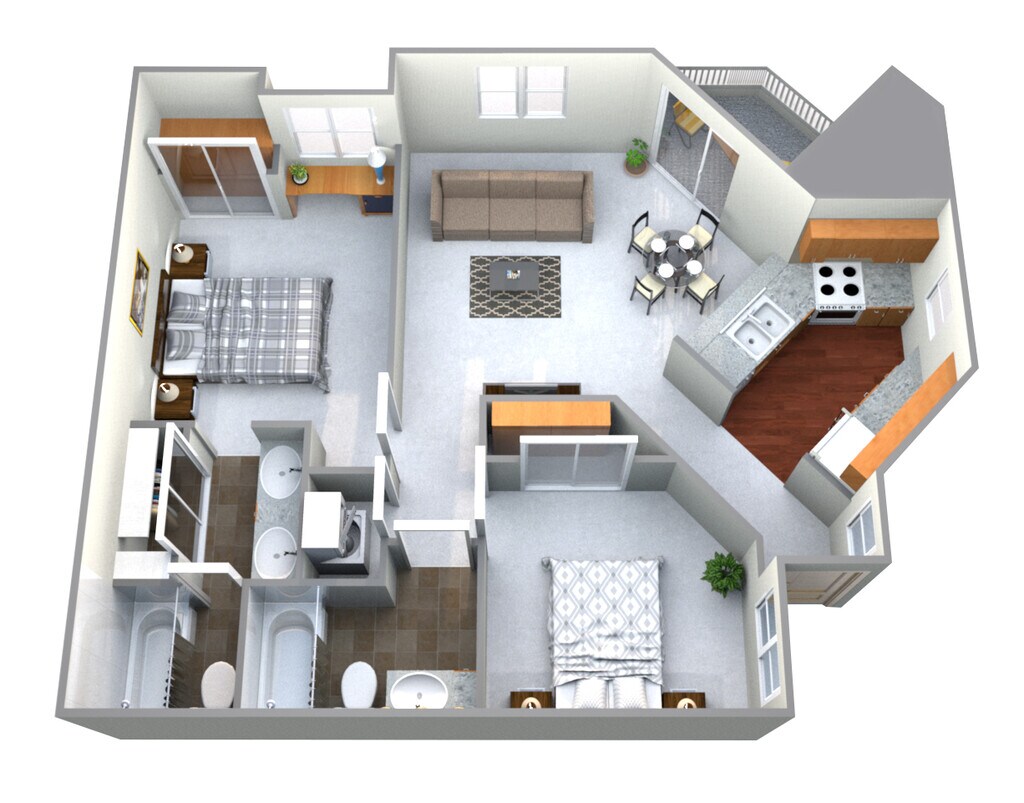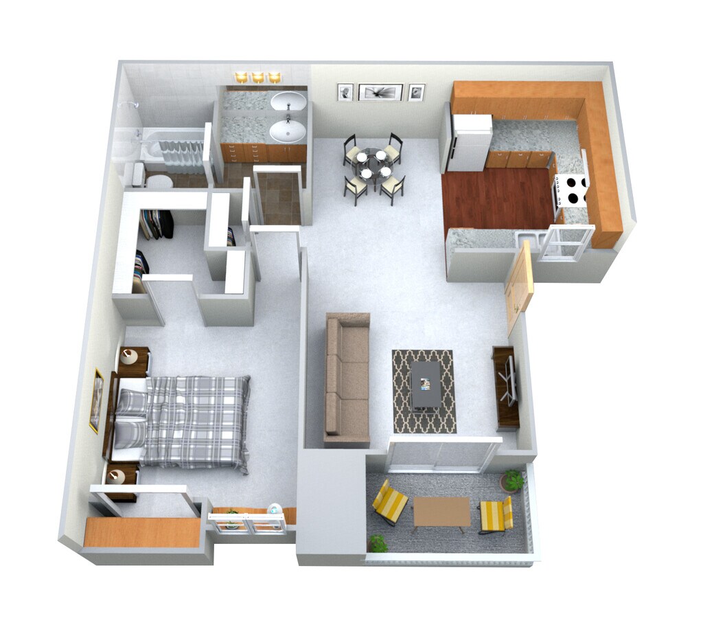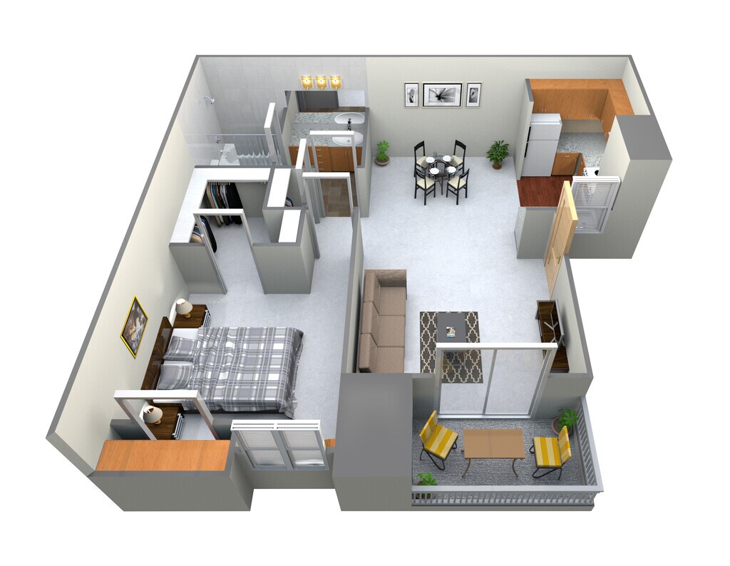1 Bed, 1 Bath, 605 sq ftModel Gallery