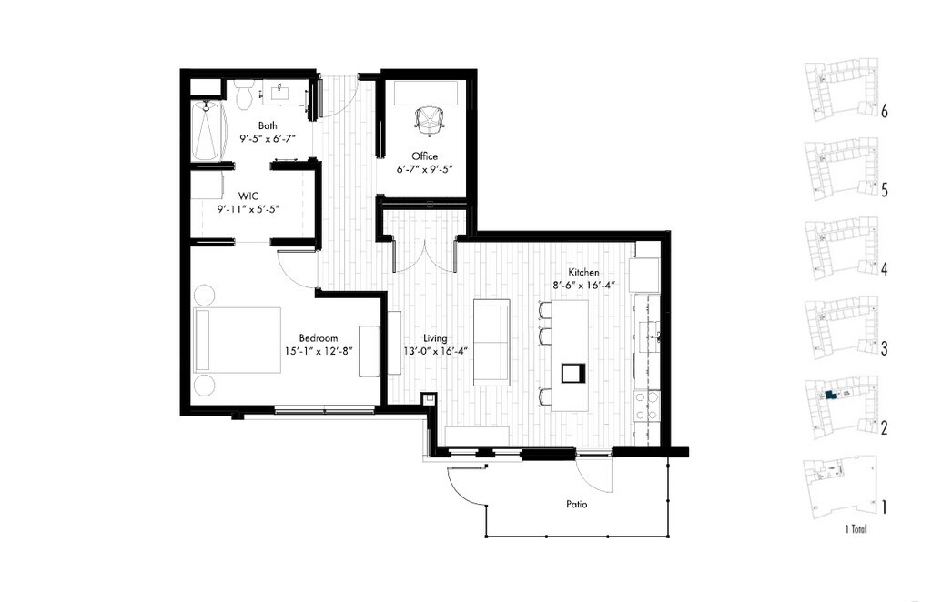 Studio, 1 Bath, 606 sq ftLargest StudioThis is the largest Studio at this PropertyModel Gallery
