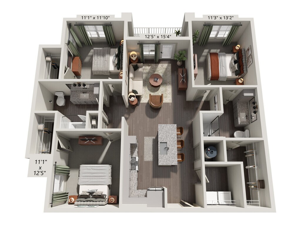 Apartment Model: C1$2,3503 Bedroom, 2 Bath, 1308 sq ftAvailable March 5, 2026Floor plans are artist's rendering. All dimensions are approximate. Actual product and specifications may vary in dimension or detail. Not all features are available in every rental home. Prices and availability are subject to change. Base rent is based on monthly frequency. Additional fees may apply, such as but not limited to package delivery, trash, water, amenities, etc. Deposits vary. Please see a representative for details.