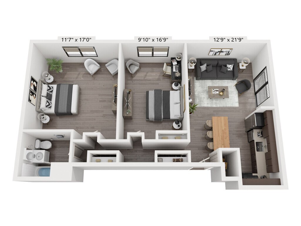 Apartment Model: Fusion2 Bedroom, 1 Bath, 1025 sq ftUnavailable![]()