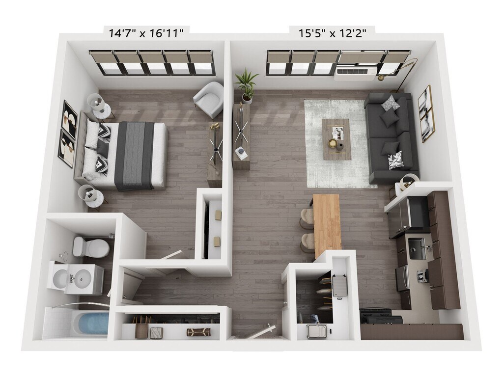 1 Bed, 1 Bath, 543 sq ftModel Gallery