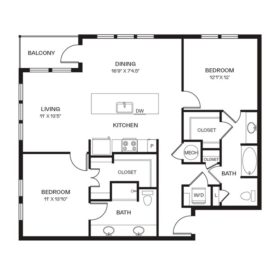 1 Bed, 1 Bath, 663-707 sq ftAvailable NowModel Gallery
