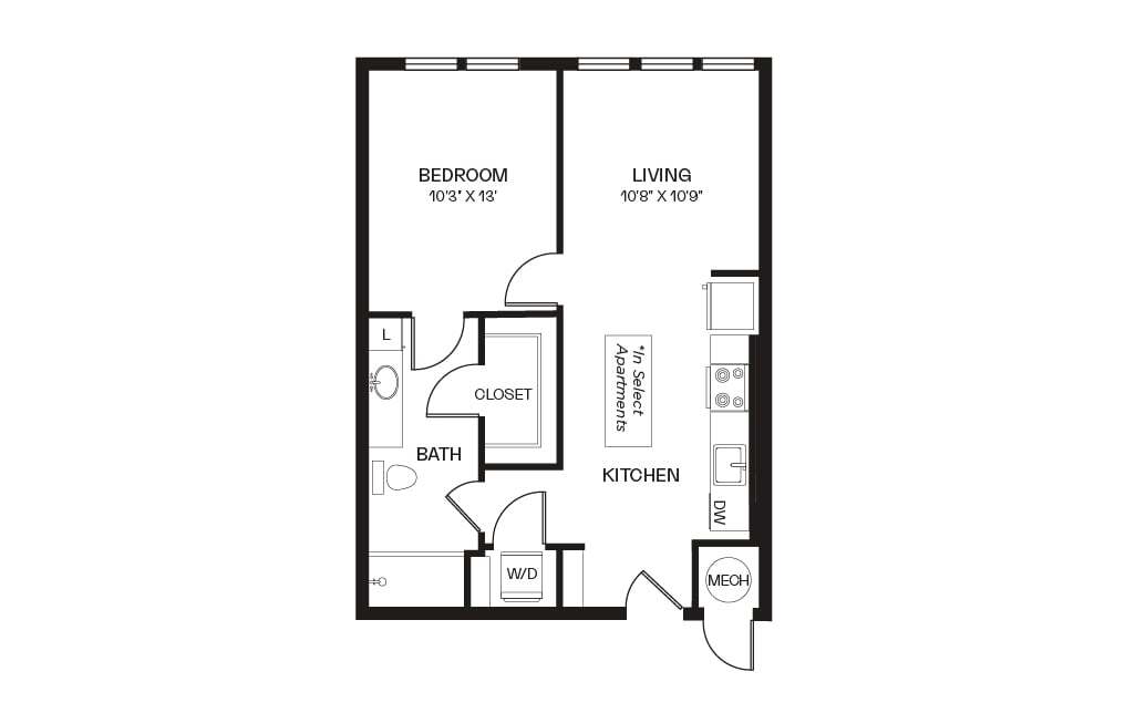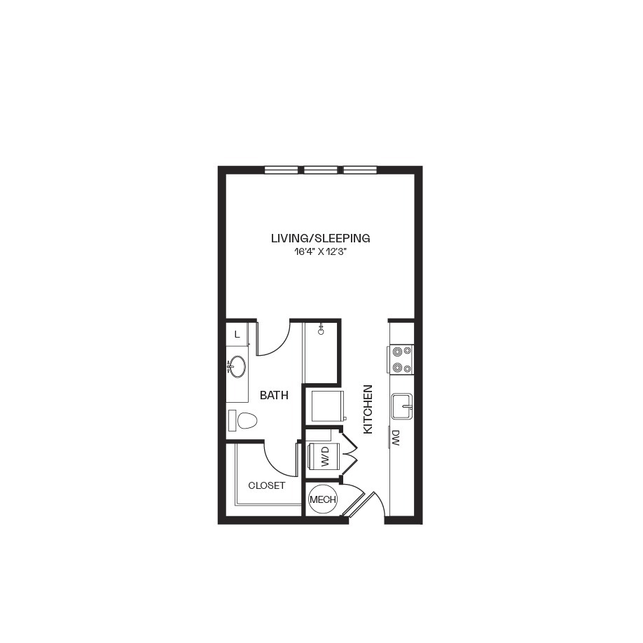 Studio, 1 Bath, 415-443 sq ftAvailable Dec 31Model Gallery