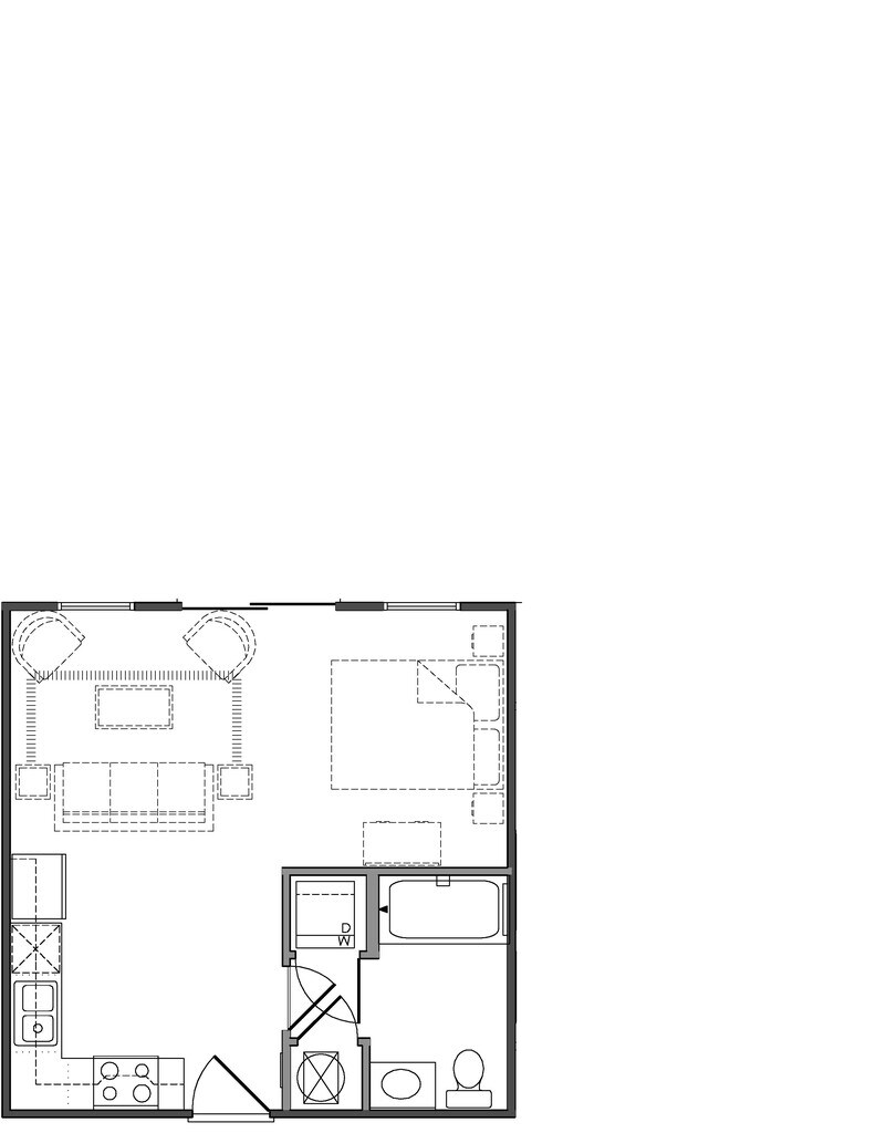 S1 Studio / One Bath - Floorplan 1 A1 One Bedroom / One Bath
