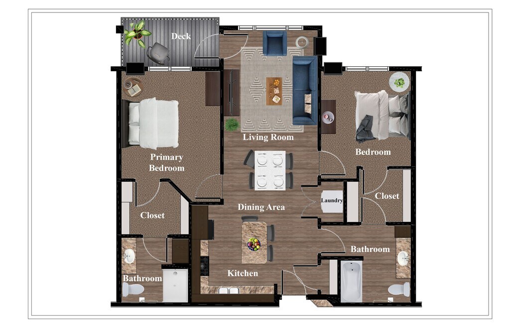 2 Beds, 2 Baths, 1101 sq ftPlus FeesAvailable NowModel Gallery