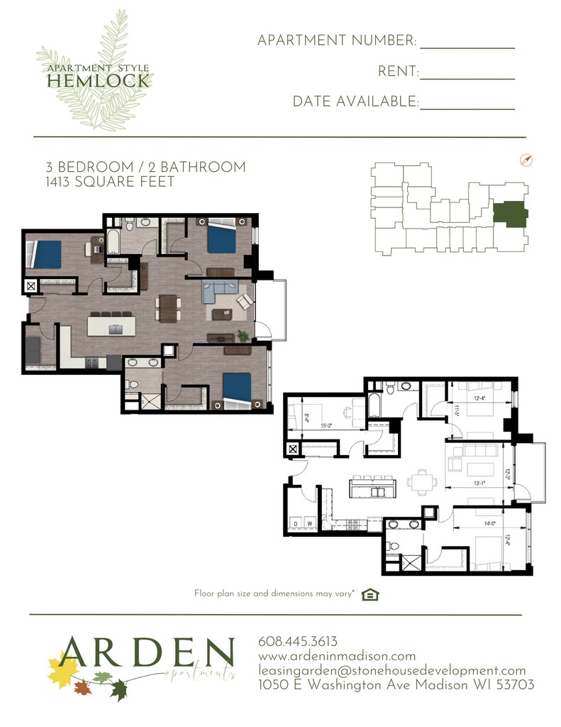 Arden offers 1 to 3 Bedroom apartments starting from $2,350 and having 1,013–1,553 sq ft. Here is the current pricing and availability: