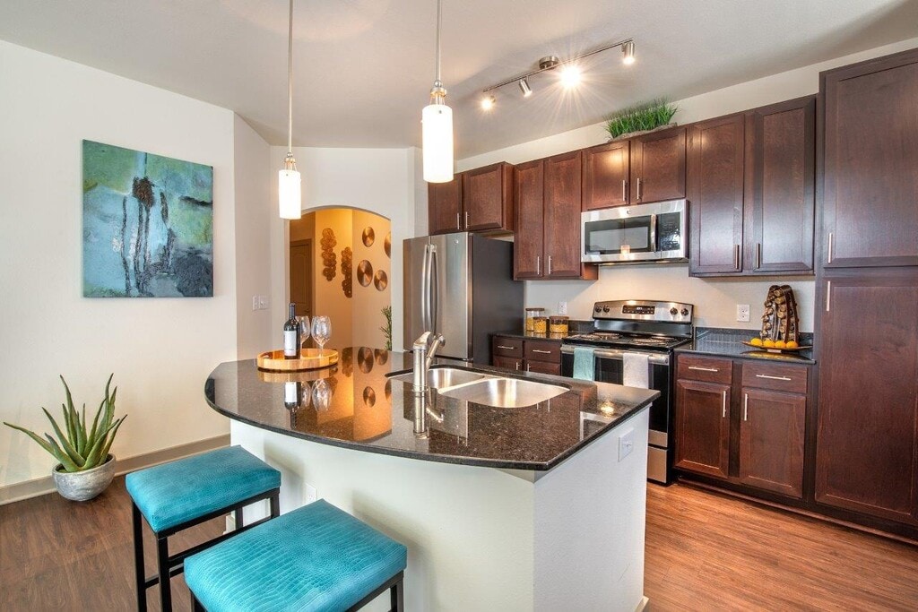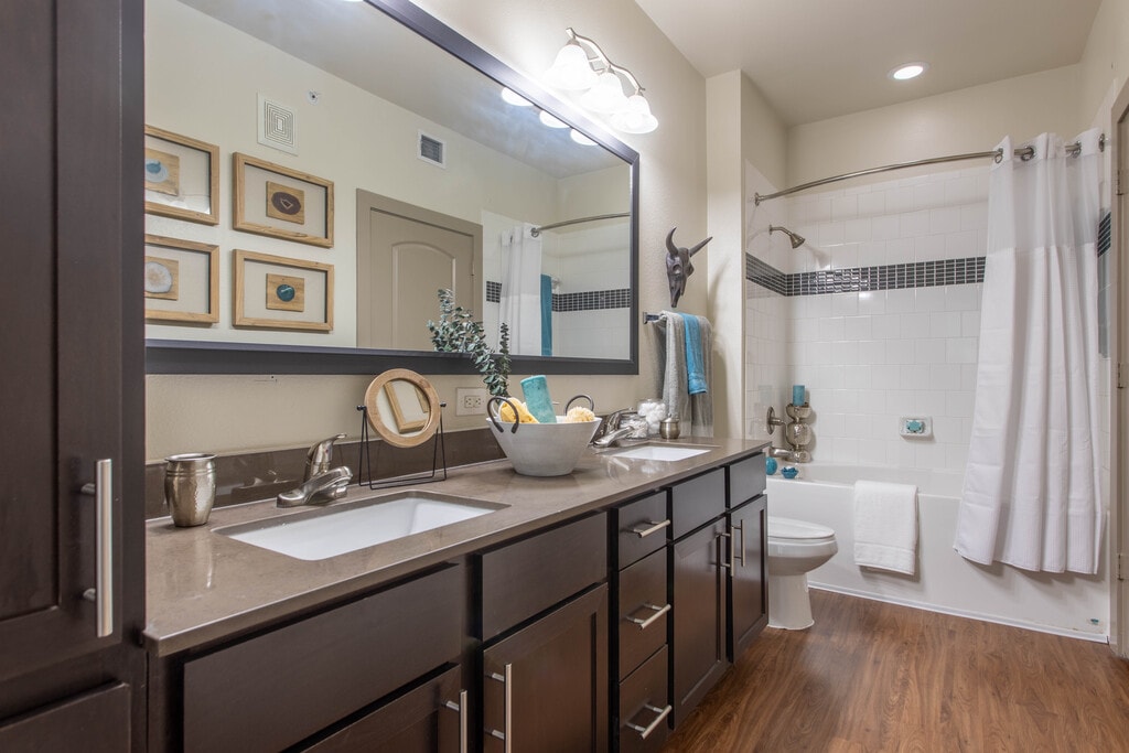 Discover the supreme comforts and enjoyable amenities of Arden Woods apartment homes for rent in Spring, TX. Inside each home, gleaming hardwood-style flooring takes you across a spacious living area to a gourmet kitchen featuring granite countertops and stainless steel Whirlpool appliances. Features include classic luxuries such as maple cabinets and full-height pantries, as well as modern conveniences like USB ports and built-in routers. Among the many amenities, youll love the 5,000-square-foot clubhouse with a billiards and wine room, along with offerings such as the crystal clear pool and well-maintained dog park.