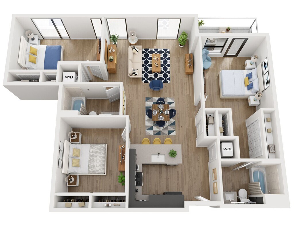 Apartment Model: A13From $3,0731 Bedroom, 1 Bath, 758 sq ftAvailable Now![]()