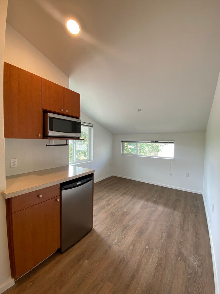 Arete Apartments offers modern, stylish, and comfortable apartment living in the most efficient way. Join a tightly knit living community at the best price point on The Eastside. Right across the street from the new Urban Center Shopping Center, you are seconds away from restaurants, bars, grocery stores, and more! Areté is also just a 5-minute walk from Lake Washington and the Kirkland Marina. In addition to offering you a high quality living space at an unmatched price, our flats are at the highest level of sustainability; Arete is LEED Platinum and Built Green 5 certified. Apartment Features - Top Floor Unit - Vaulted Ceilings - Corner Unit - Convenience Center with Microwave & Mini-Fridge - Wood Floors - Private Bathroom - High-Speed Internet - East City View Community Features - 24 Hour Fitness Center - Common Kitchens - Onsite Laundry Areas - Roof Top Decks - BBQ & Cabana Deck - Conference Rooms - Business Center - Music Room - Dog Run