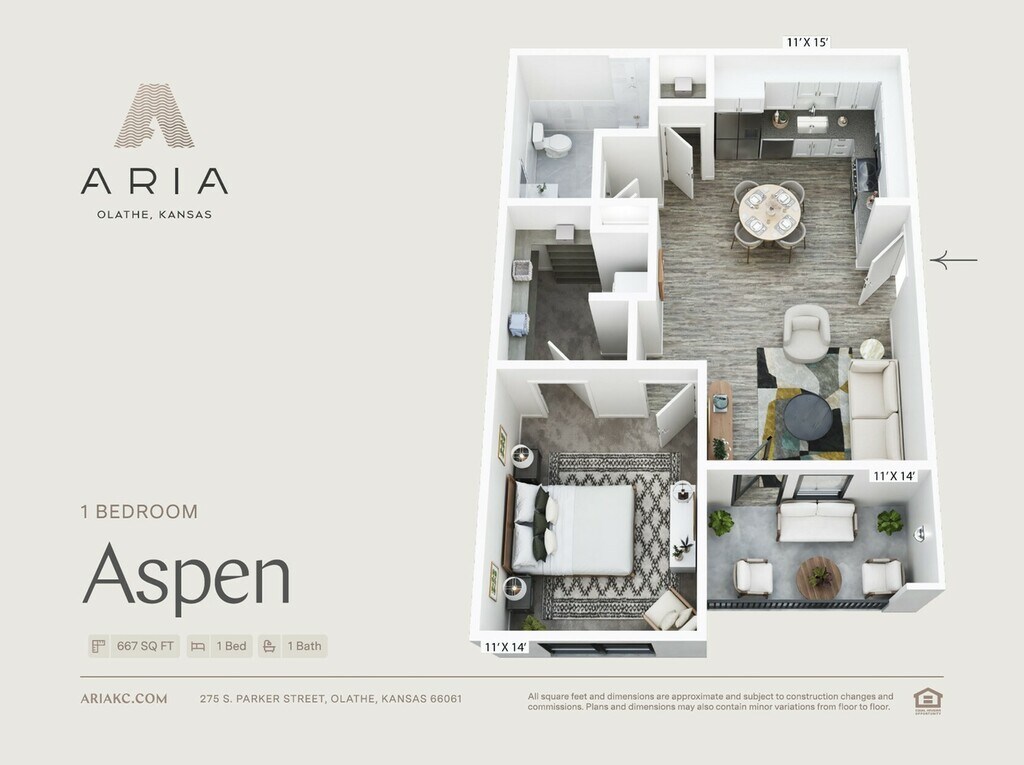 Aria Apartments is located in the Outlying Johnson County KS Neighborhood and 66061 Zip code of Olathe, KS. This community is professionally managed by Yates & Yates Co