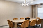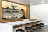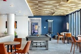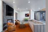 ARIA is a private gated community featuring a collection of one, two, and three-bedroom luxury residences in the heart of Olathe, Kansas. The communitys upscale design embraces natural beauty and cutting-edge technology in a celebration of effortless living. Airy, open concept interiors incorporate clean lines, natural materials, and smart technology. Private porches, spacious closets, Zen-like bathrooms, convenient laundry closets, and dramatic kitchens fuse luxury and function with the freedom to choose the feel and use of each space. The interplay between the indoors and outdoors, the rich selection of spaces and activities, and the inspired design set The Clubhouse apart and above as a uniquely immersive lifestyle experience. The Clubhouse is designed around an open, central area featuring a lounge complete with a fireplace, seating areas, bar, and an open kitchen for entertaining. The adjacent game area has a glass wall overlooking the sparkling swimming pool.