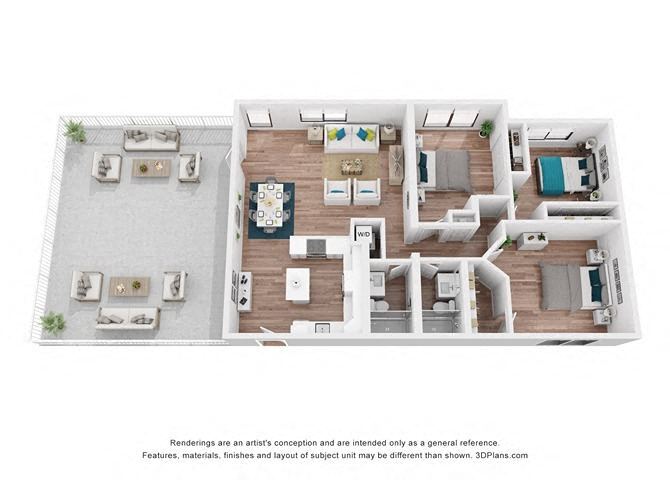 - 3 Bedrooms- 3 Bed - 2 Bath with Private Rooftop Terrace3 Beds, 2 Baths, 1430 sq ft- Model Gallery- Floorplans- Availability Details- Price - Availability Date - Unit - Sq Ft - $4,550 - Call for Availability - 3 Bed - 2 Bath with Private Rooftop Terrace - 1430 sq ft - Model Amenities and Features- Features- Balcony