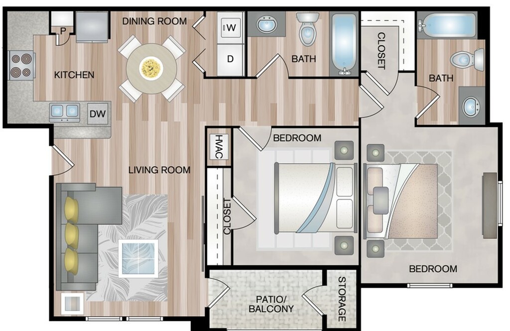 2 Beds, 2 Baths, 944 sq ftAvailable NowModel Gallery