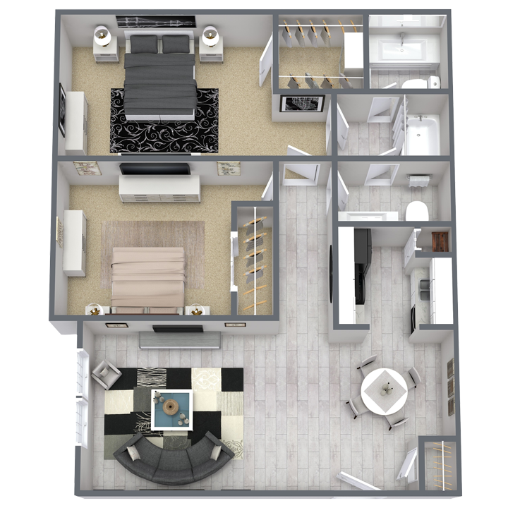 2 Beds, 2 Baths, 960 sq ftModel Gallery