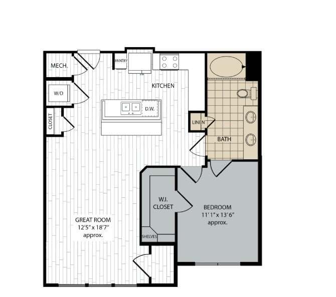 1 Bed, 1 Bath, 683 sq ftAvailable NowModel Gallery