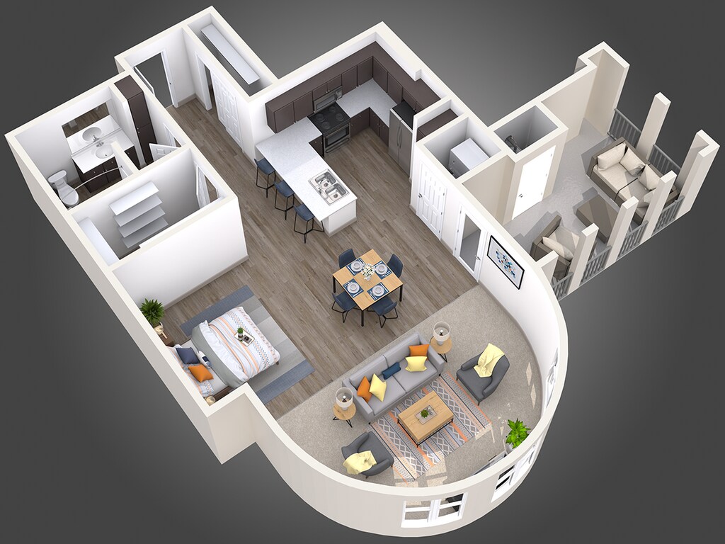 1 Bed, 1 Bath, 805 sq ftModel Gallery