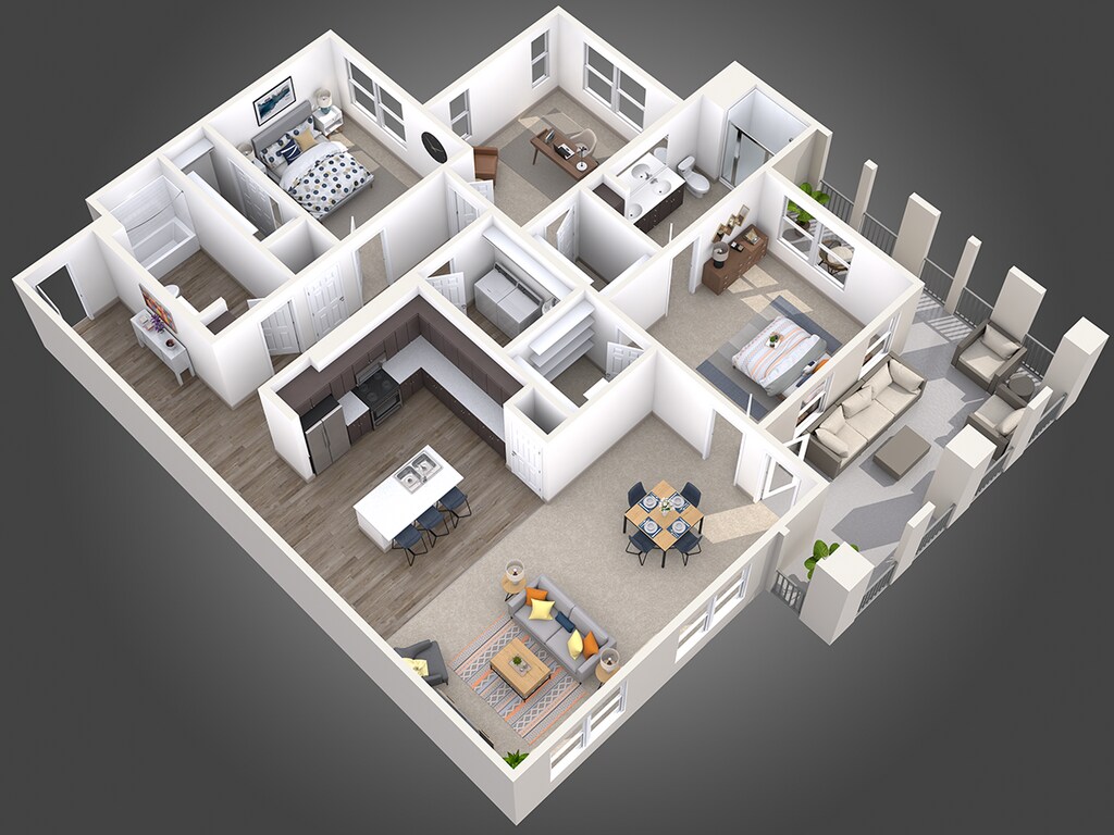 1 Bed, 2 Baths, 1296 sq ftLargest 1 BedroomThis is the largest 1 Bedroom at this PropertyModel Gallery
