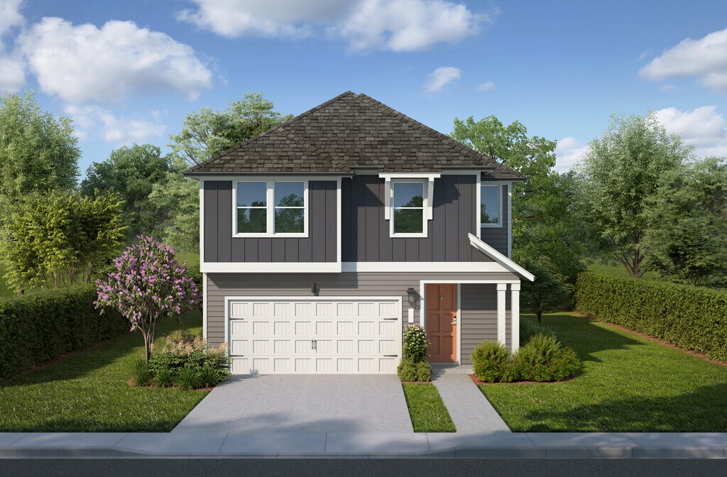 Arista San Gabriel offers a variety of three and four-bedroom single family homes for rent in a true neighborhood setting in Leander, Texas. Relax in your home with upscale features, including private backyards*, two-car garages prewired for EV chargers, and spacious interiors. Enjoy gourmet kitchens with stainless steel appliances, granite countertops, and designer finishes, plus bathrooms with double vanities* and walk-in showers. Homes also include full-size washers and dryers, oversized closets, and dedicated office space. Step outside to enjoy community amenities including a refreshing pool and a fun playscape perfect for relaxing and connecting close to home.