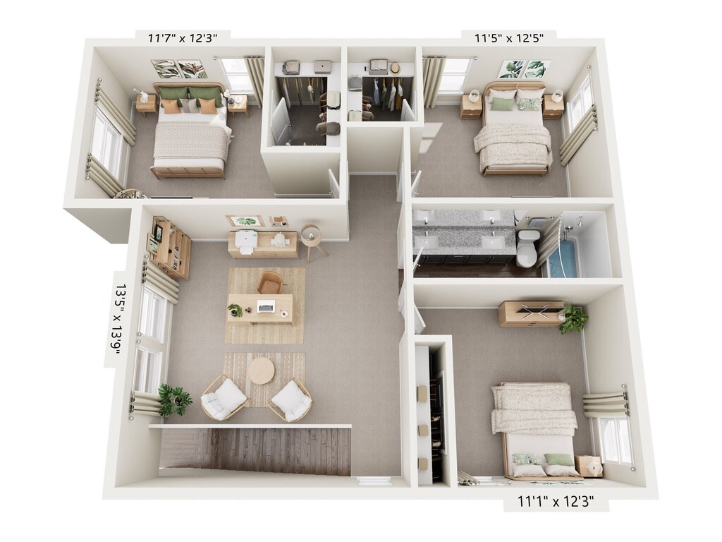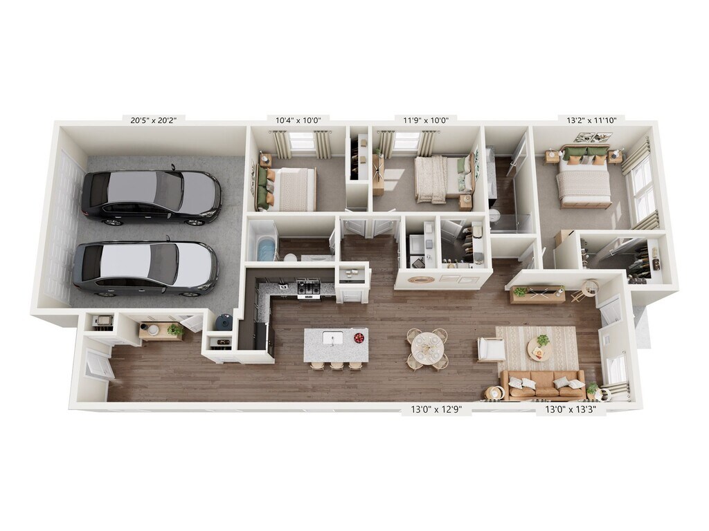 3 Beds, 2.5 Baths, 1817 sq ftAvailable NowLargest 3 BedroomThis is the largest 3 Bedroom at this PropertyModel Gallery
