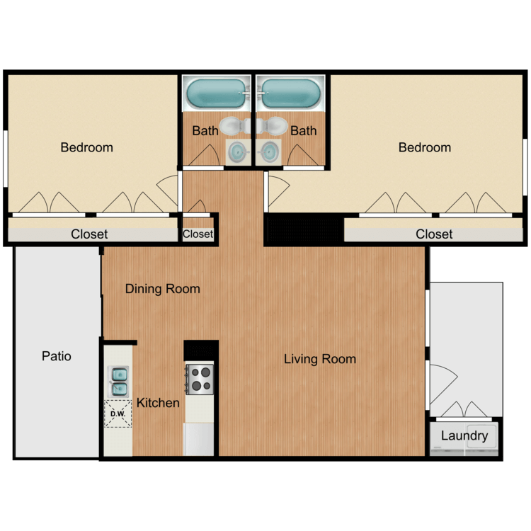 2 Beds, 2 Baths, 1450 sq ftLargest 2 BedroomThis is the largest 2 Bedroom at this PropertyModel Gallery