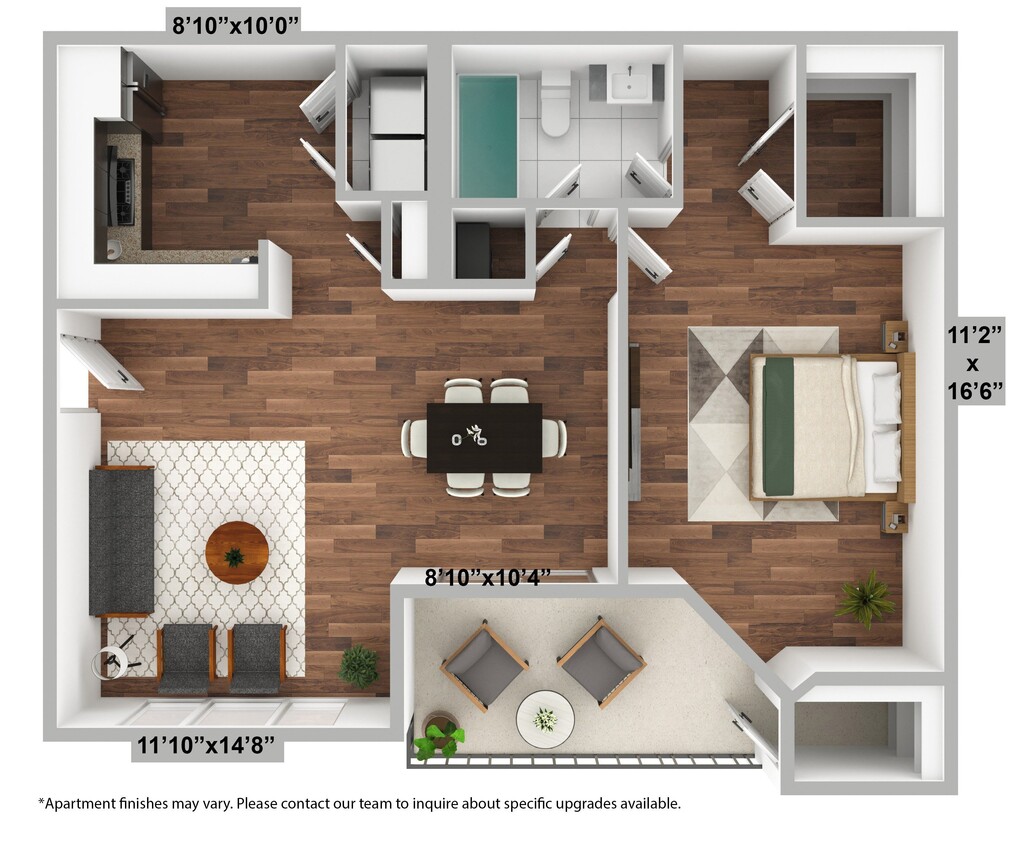 1 Bed, 1 Bath, 855 sq ftAvailable NowLargest 1 BedroomThis is the largest 1 Bedroom at this PropertyModel Gallery