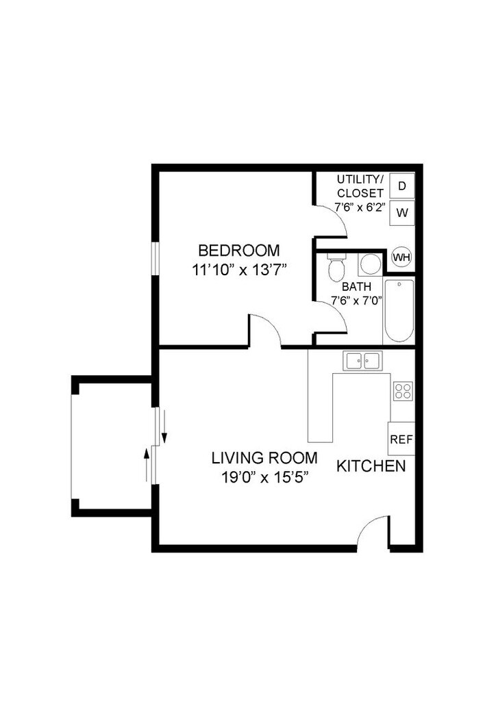 Standard One Bedroom - Floorplan 2 Apartment Unit: 200 4JApartment Model: Standard One Bedroom1 Bedroom, 1 Bath, 600 sq ftAvailable Now![]()