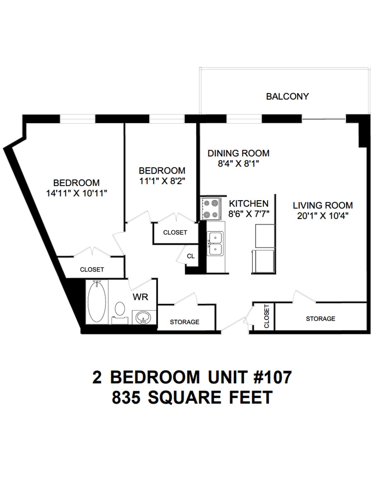 Apartment Model: 2 Bedroom2 Bedroom, 1 Bath, 835 sq ftAvailable April 1, 2026![]()