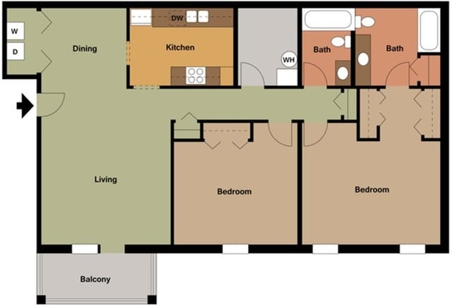 Apartment Model: 2+2From $1,1202 Bedroom, 2 Bath, 1239 sq ftAvailable Now![]()