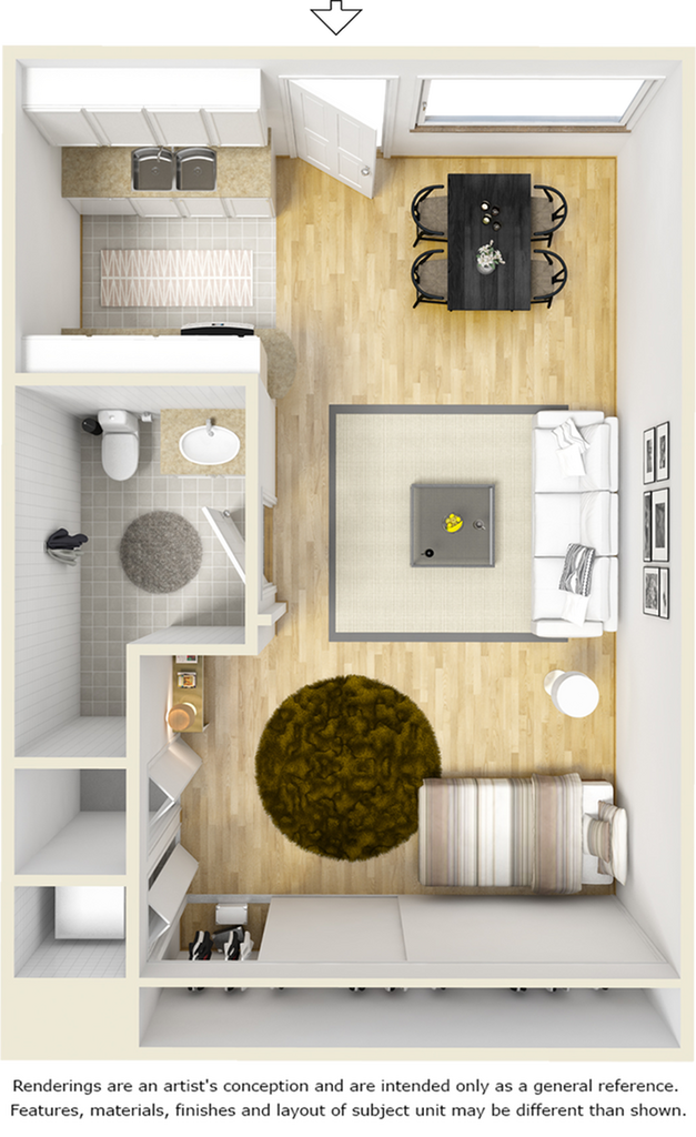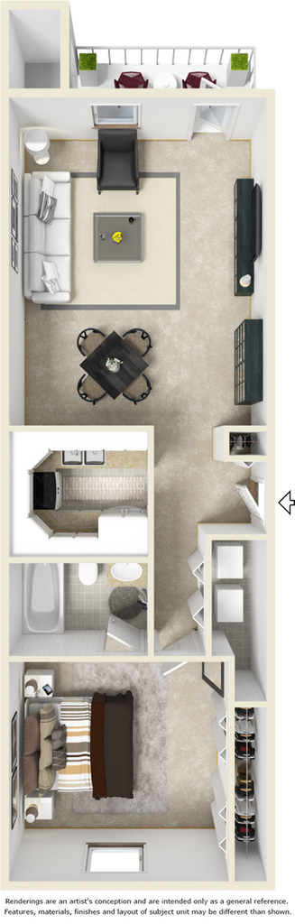 Studio, 1 Bath, 421 sq ftAvailable NowModel Gallery