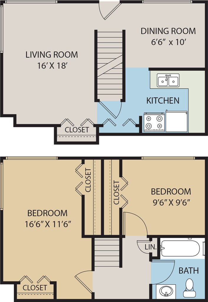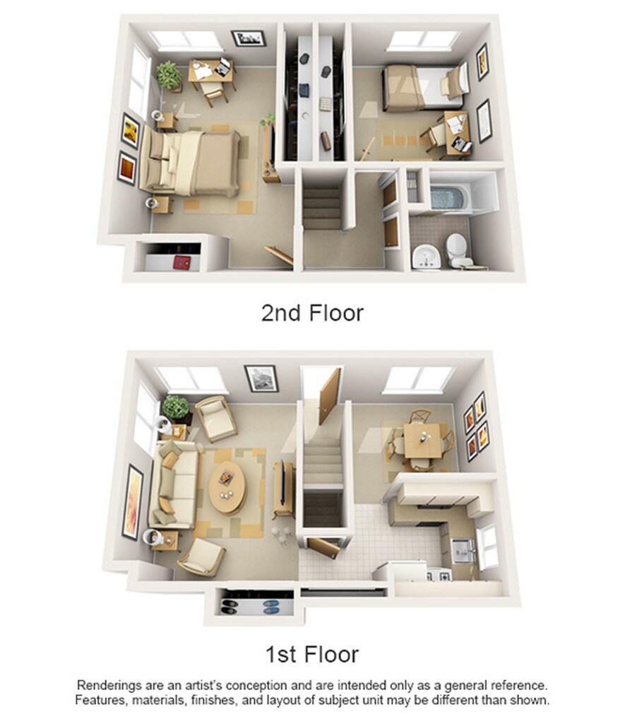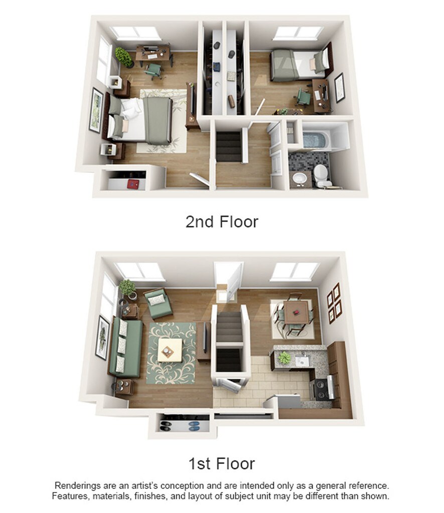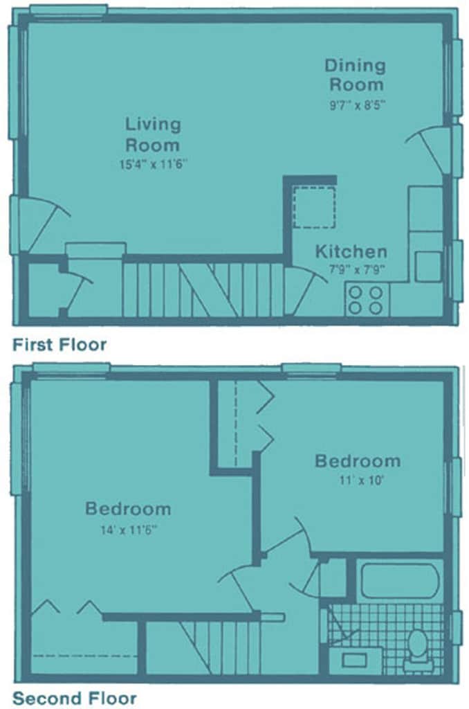 2 Bedroom Apartment - Floorplan 3 2 Bed 1 Bath Townhome Center