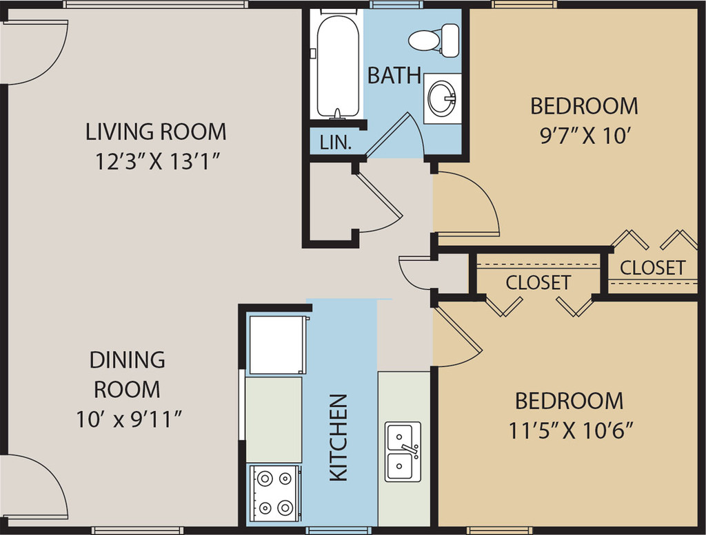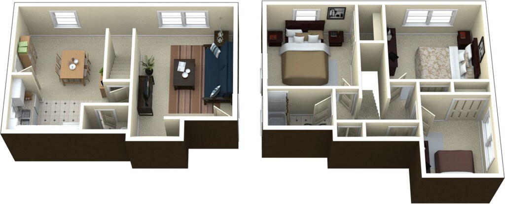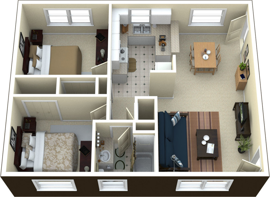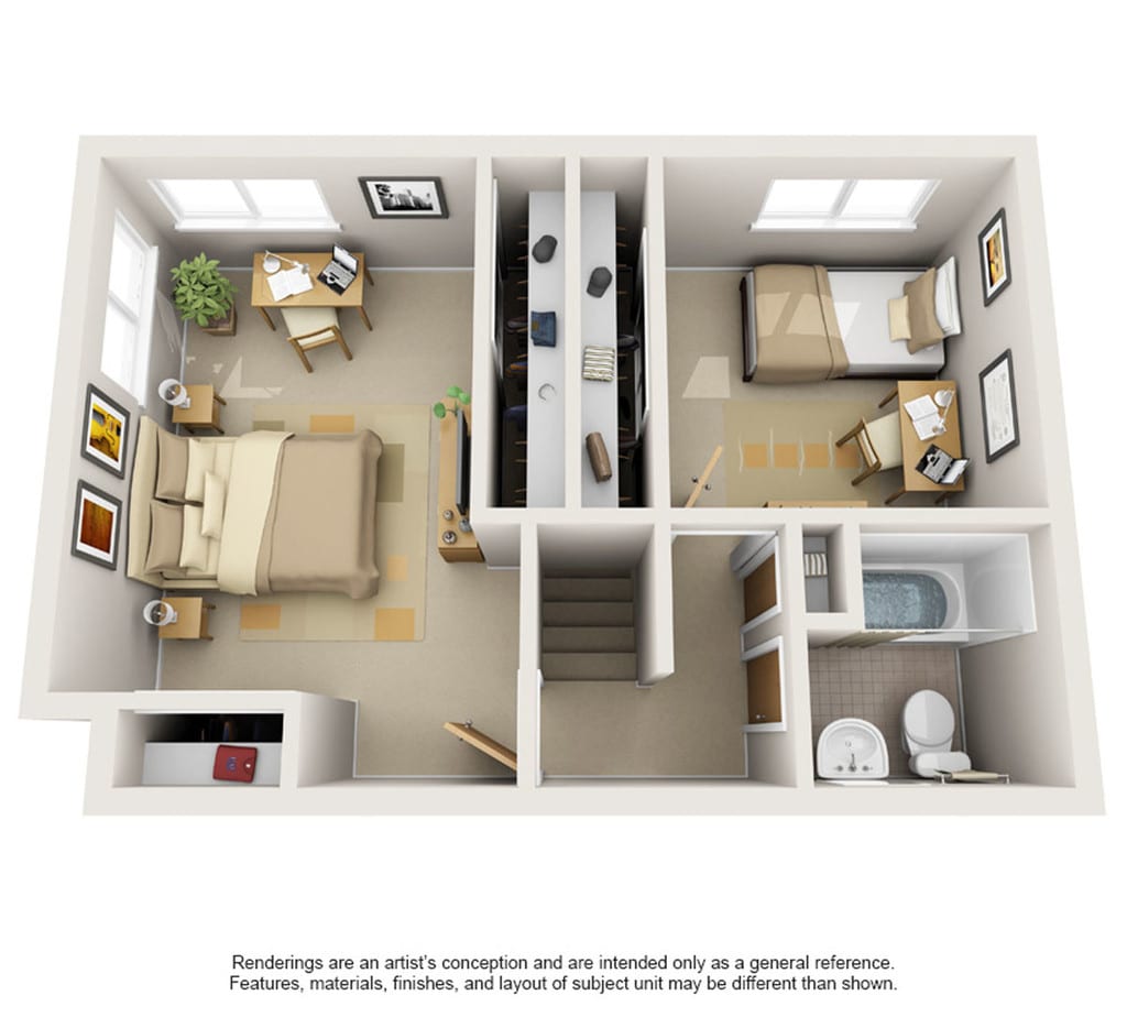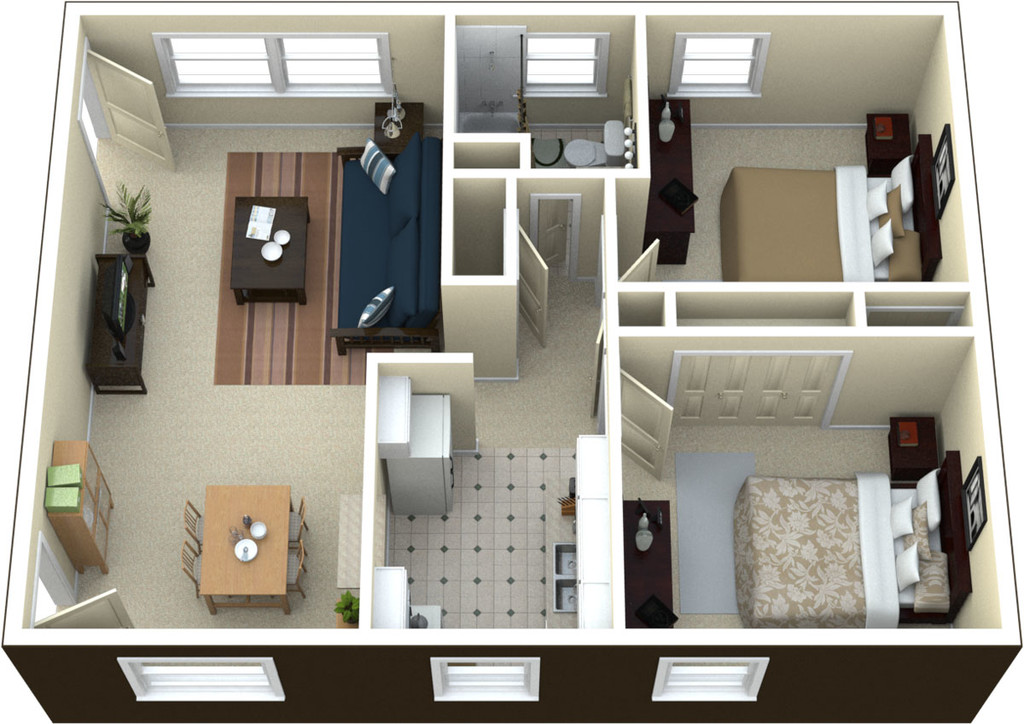 2 Bedroom Apartment - Floorplan 3 2 Bed 1 Bath Townhome Center
