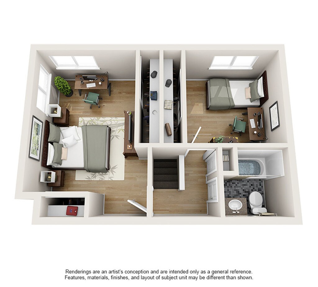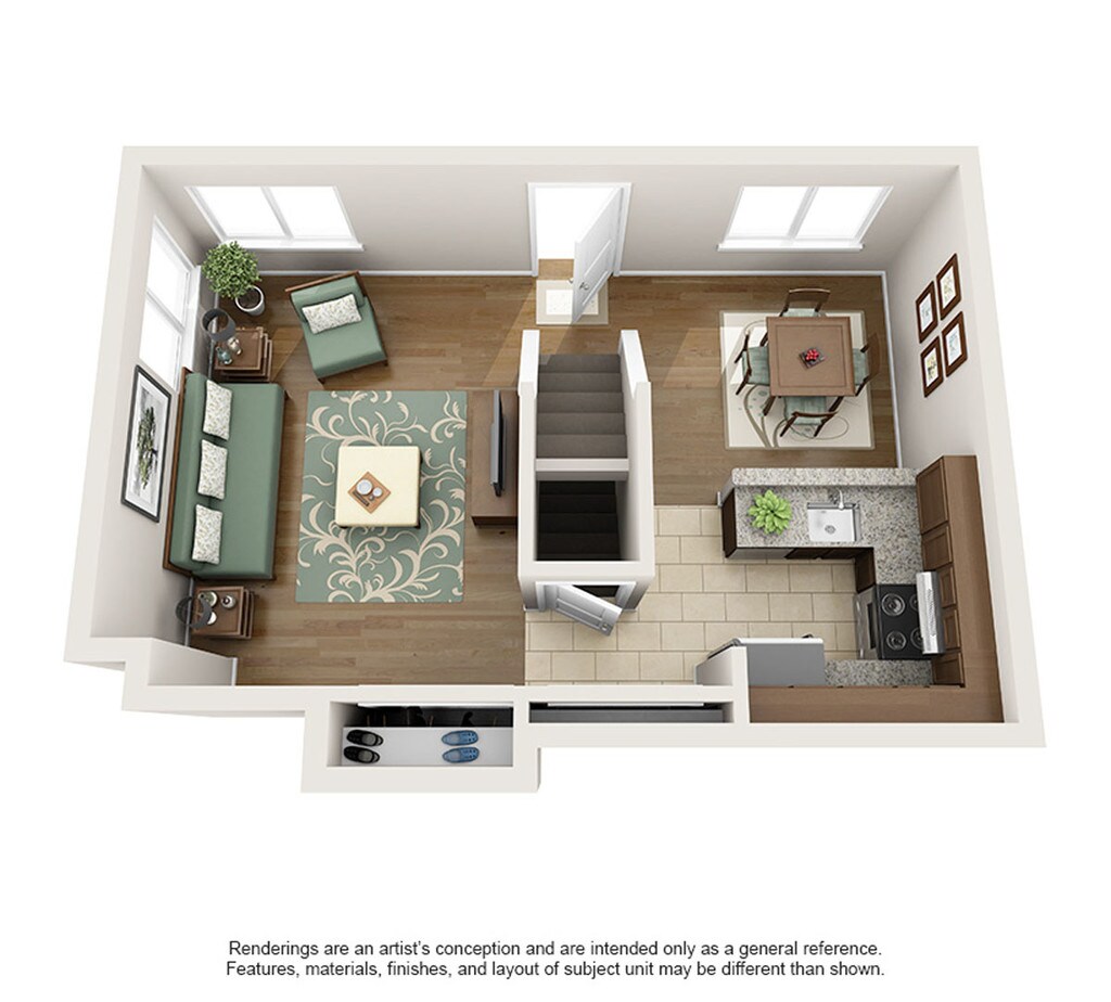 2 Bed 1 Bath Townhome Center - Floorplan 5 Premium 2 Bedroom Townhome