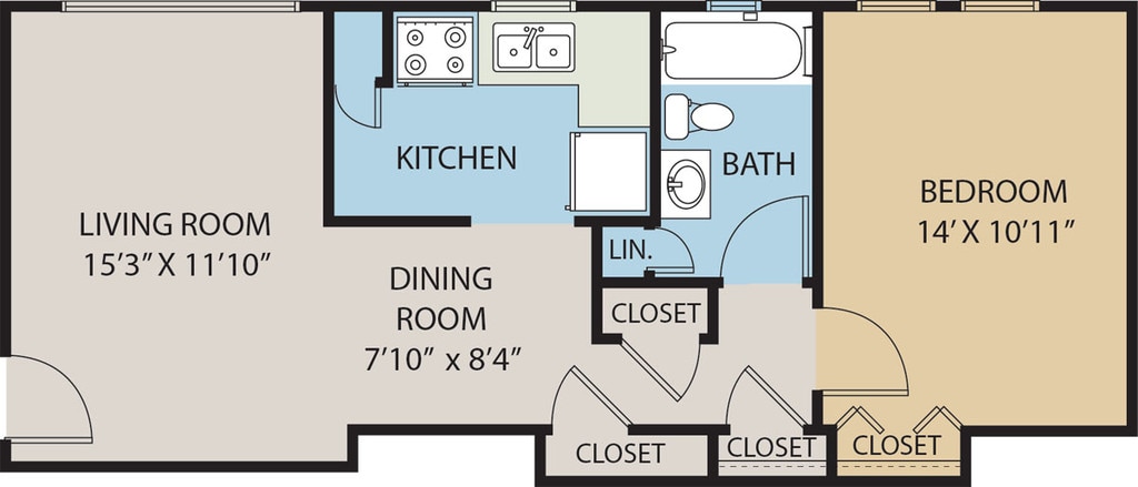 1 Bedroom Apartment - Floorplan 1 ![]()