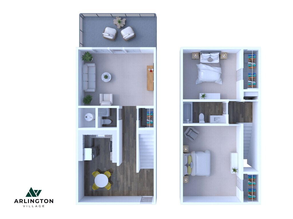 2 Beds, 1.5 Baths, 1100 sq ftModel Gallery