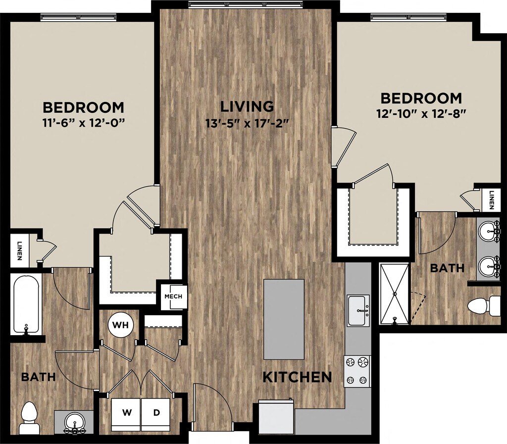 2 Beds, 2 Baths, 1240-1251 sq ftAvailable NowLargest 2 BedroomThis is the largest 2 Bedroom at this PropertyModel Gallery