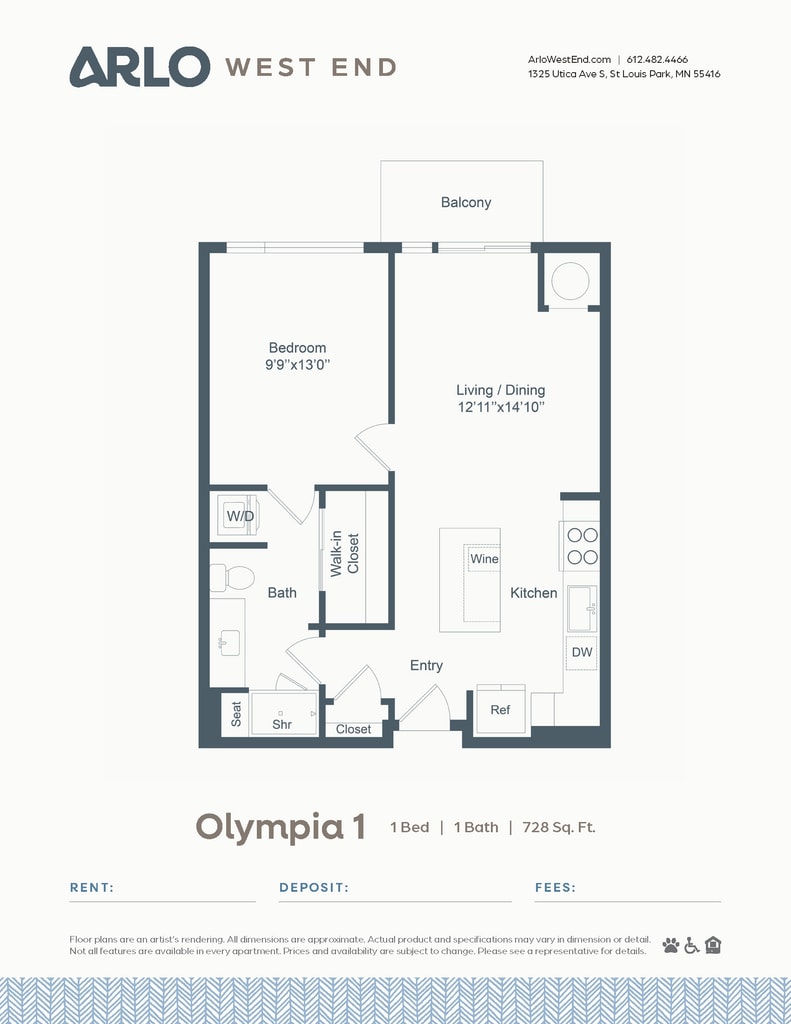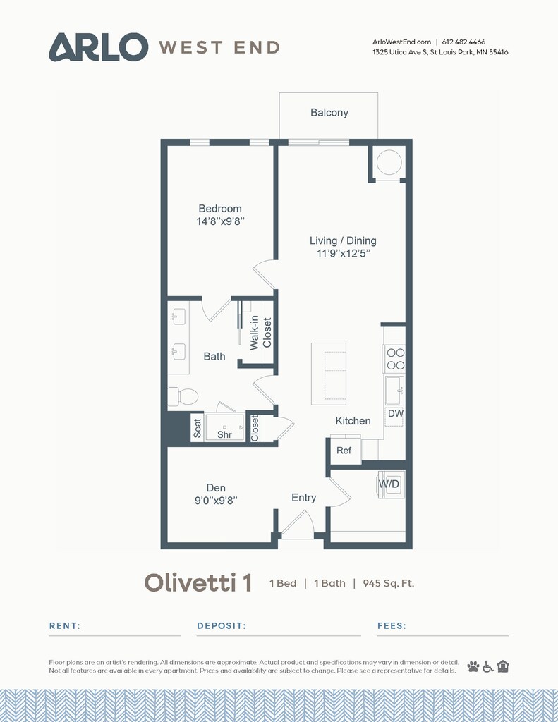 Apartment Model: Olivetti 1$2,4351 Bedroom, 1 Bath, 945 sq ftAvailable March 15, 2026![]()