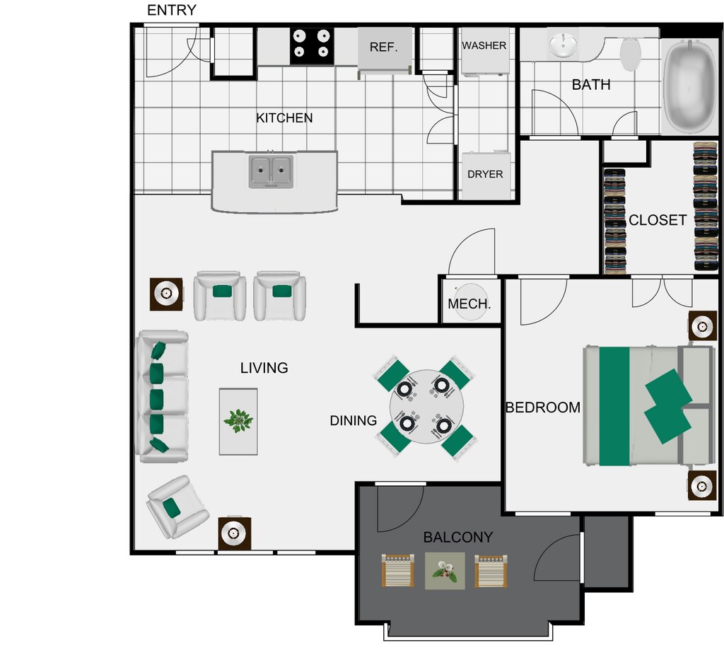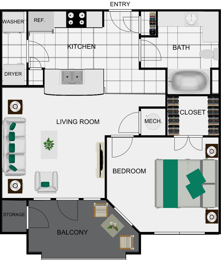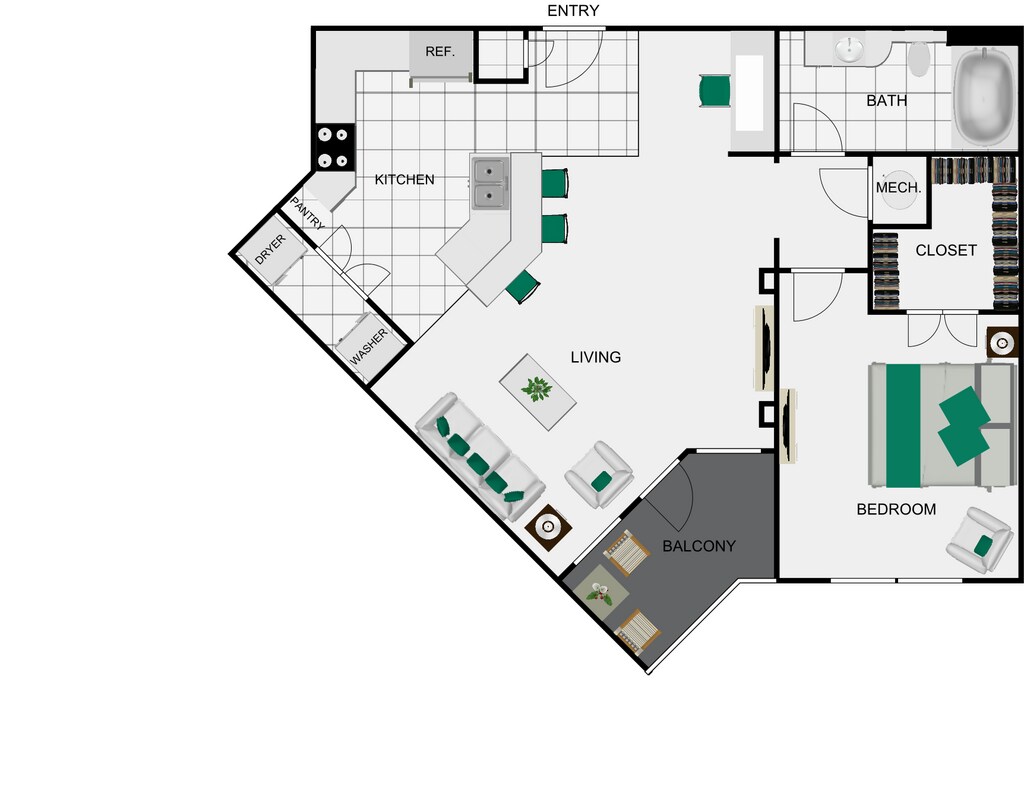 Apartment Model: A1.P8From $1,2701 Bedroom, 1 Bath, 632 sq ftAvailable NowFloor plans are artist's rendering. All dimensions are approximate. Actual product and specifications may vary in dimension or detail. Not all features are available in every rental home. Prices and availability are subject to change. Base rent is based on monthly frequency. Additional fees may apply, such as but not limited to package delivery, trash, water, amenities, etc. Deposits vary. Please see a representative for details.