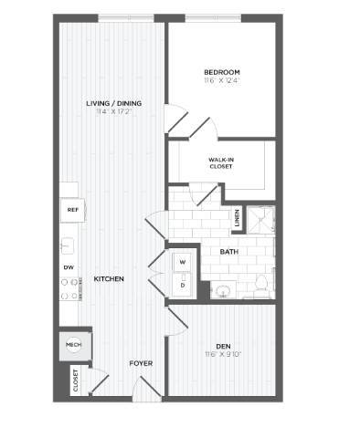 Apartment Model: e10bCall For RatesStudio, 1 Bath, 568 sq ftUnavailableFloor plans are artist's rendering. All dimensions are approximate. Actual product and specifications may vary in dimension or detail. Not all features are available in every rental home. Prices and availability are subject to change. Base rent is based on monthly frequency. Additional fees may apply, such as but not limited to package delivery, trash, water, amenities, etc. Deposits vary. Please see a representative for details.