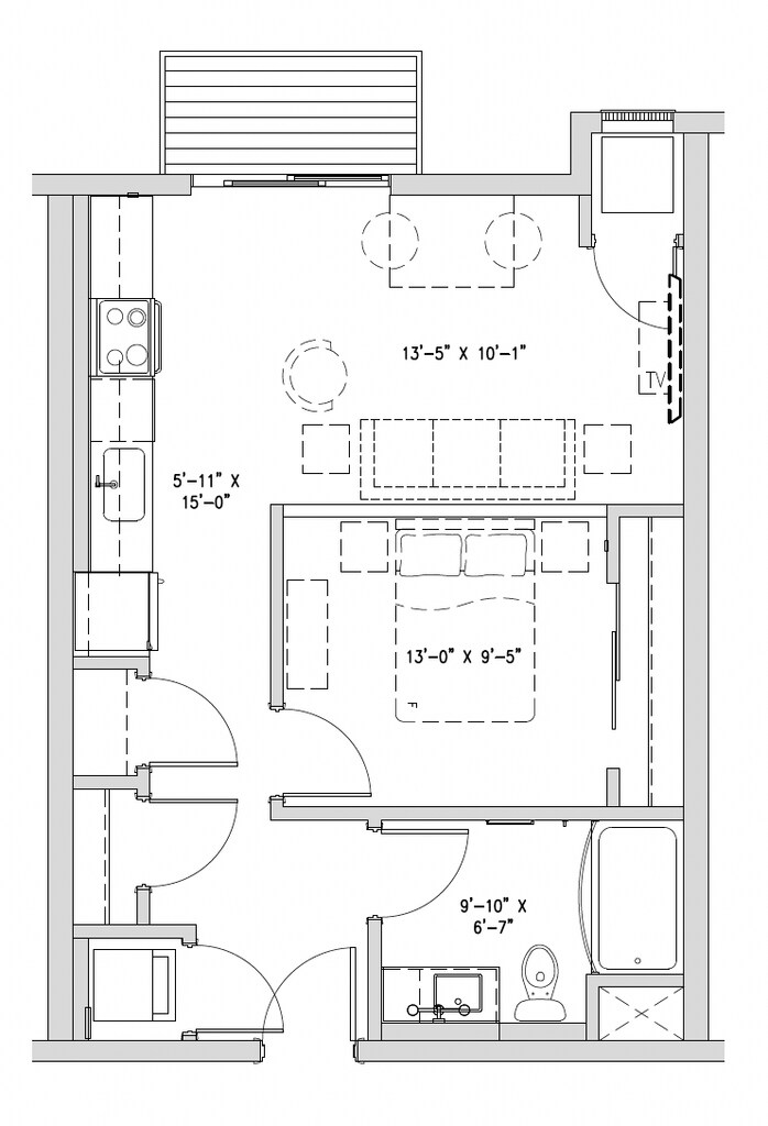 Studio, 1 Bath, 576 sq ftLargest StudioThis is the largest Studio at this PropertyModel Gallery