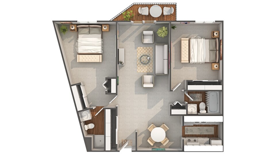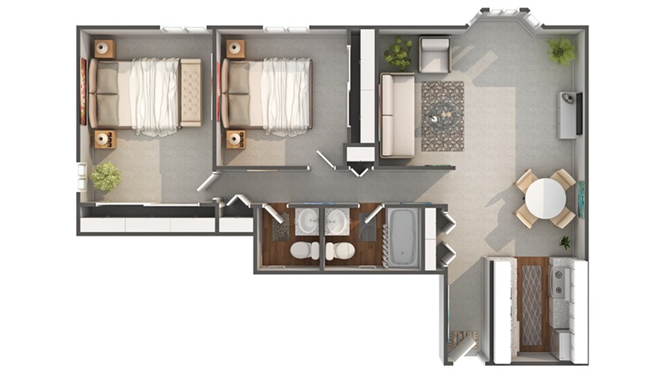 The Birch - Floorplan 2 Apartment Unit: 4301-140Apartment Model: The BirchFrom $1,5991 Bedroom, 1 Bath, 764 sq ftAvailable March 20, 20262 Bedrooms