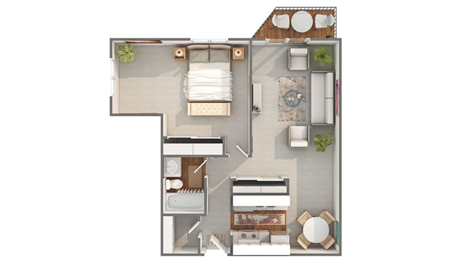 The Cottonwood - Floorplan 1 Apartment Unit: 4301-223Apartment Model: The CottonwoodFrom $1,4491 Bedroom, 1 Bath, 600 sq ftAvailable NowThe Elm