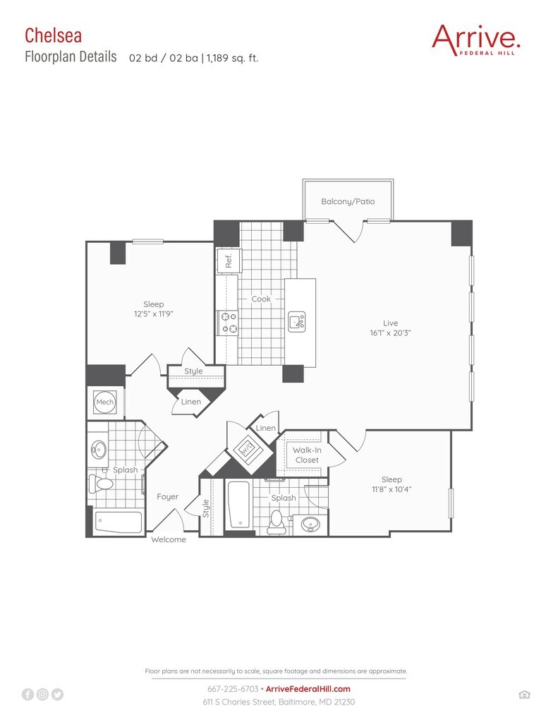 Arrive Federal Hill offers 1 to 2 Bedroom apartments starting from $1,995 and having 771–1,189 sq ft. Here is the current pricing and availability: