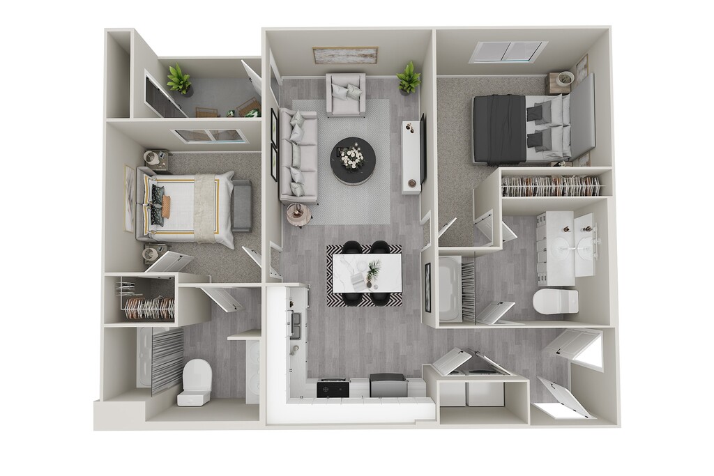 - 2 Bedrooms- The Grace- From $2,7702 Beds, 2 Baths, 993-1082 sq ftAvailable Now- Model Gallery- Floorplans- Availability Details- Price - Availability Date - Unit - Sq Ft - Deposit - $2,800 - Available Now - 01-304 - 1011 - $500 - $2,770 - Available Now - 02-204 - 993 - $500 - Model Amenities and Features- Features- Air Conditioning
