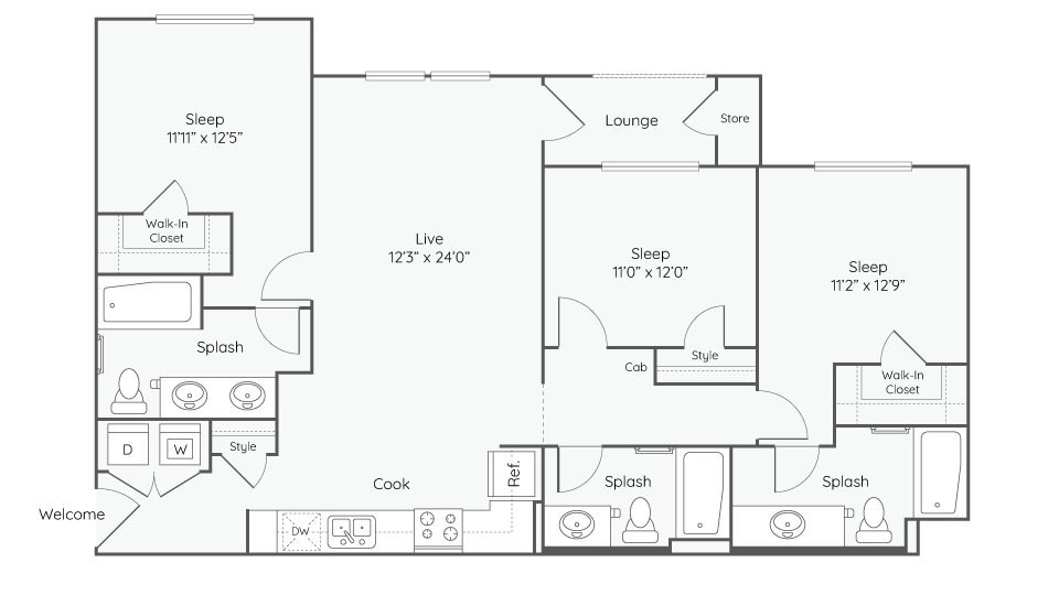 - 3 Bedrooms- The Adeline- From $3,3253 Beds, 3 Baths, 993-1355 sq ftAvailable Now- Model Gallery- Floorplans- Availability Details- Price - Availability Date - Unit - Sq Ft - Deposit - $3,550 - Available Now - 06-308 - 1350 - $500 - $3,325 - Available Now - 08-201 - 1350 - $500 - Model Amenities and Features- Features- Air Conditioning