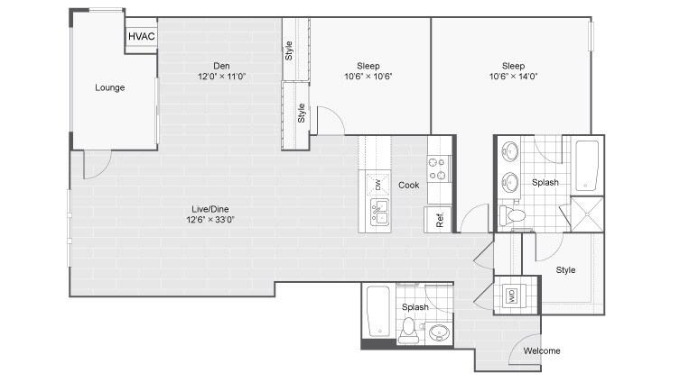McKinley Loft - Floorplan 4 Apartment Unit: 1-322Apartment Model: McKinley LoftFrom $2,9992 Bedroom, 2 Bath, 890 sq ftAvailable NowTaylor Loft