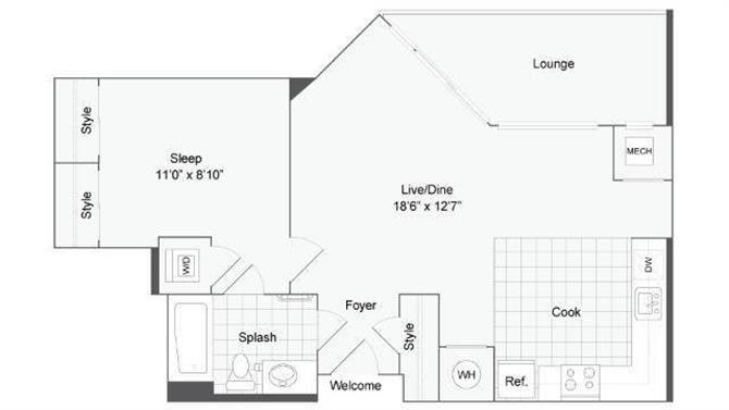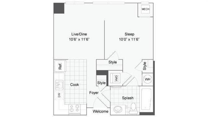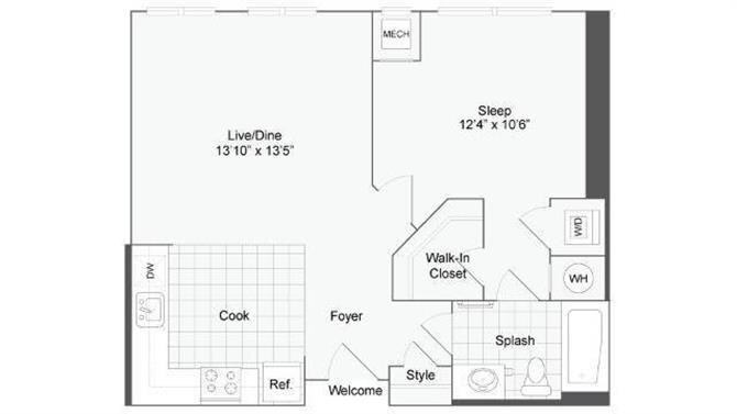 Studio, 1 Bath, 586 sq ftAvailable NowModel Gallery