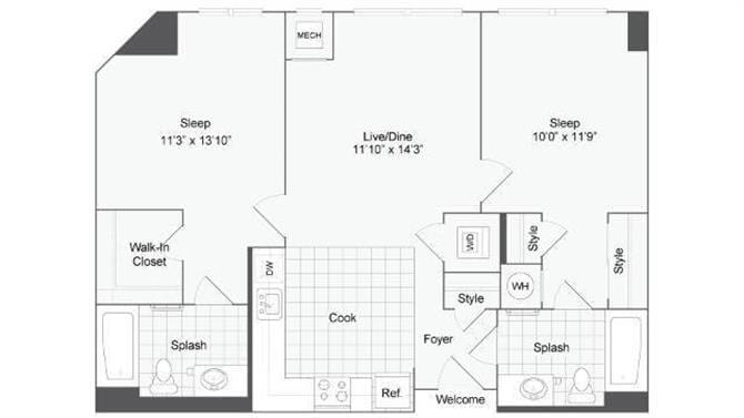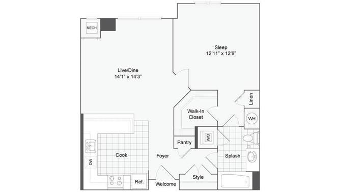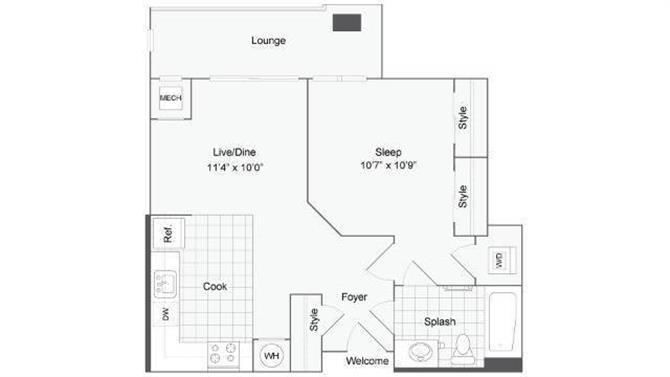 Studio, 1 Bath, 802 sq ftAvailable NowModel Gallery