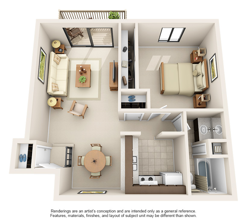 Apartment Model: Pond$1,6281 Bedroom, 1 Bath, 728-730 sq ftAvailable NowPond - Floorplan 1 Stream