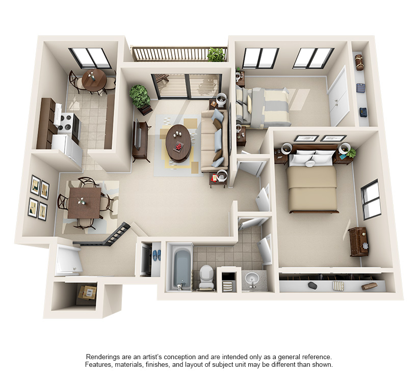 2 Beds, 1 Bath, 812 sq ftAvailable NowModel Gallery