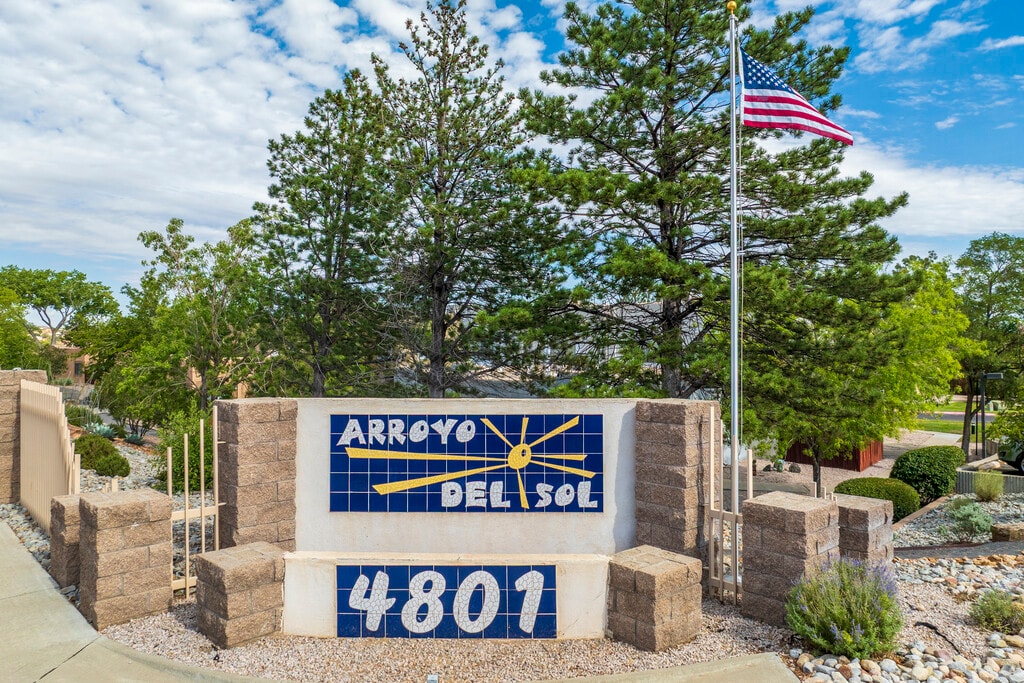 Enjoy Albuquerque living at Arroyo Del Sol Condominiums. The address for this community is on Irving Blvd NW in Albuquerque. The professional leasing staff is waiting to show you all that this community has to offer. Stop by Arroyo Del Sol Condominiums today.